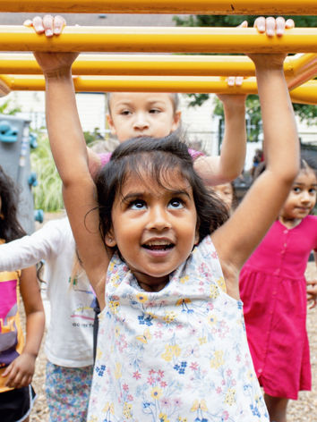 Our playgrounds are located behind our buildings. For safety reasons, each playground is sectioned-off by age group, with each section separated by fencing.